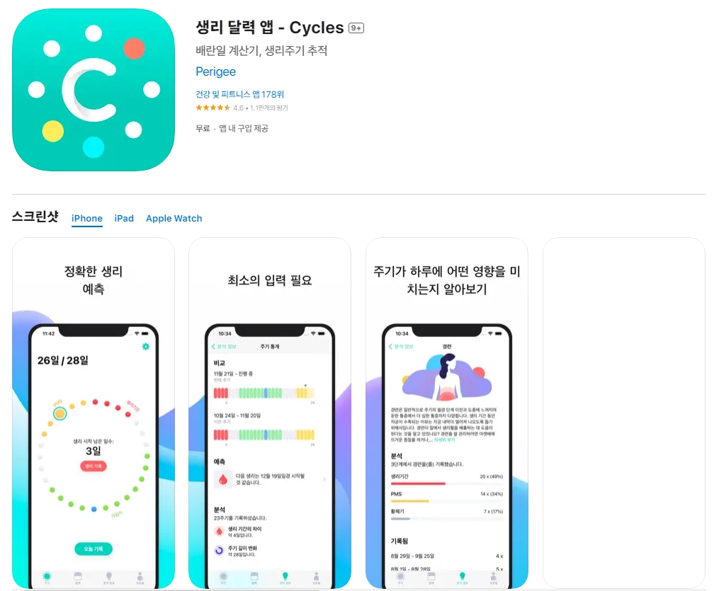 2) 아이폰 생리 달력 앱 - Cycles 9+ 어플 다운로드 / 스크린샷