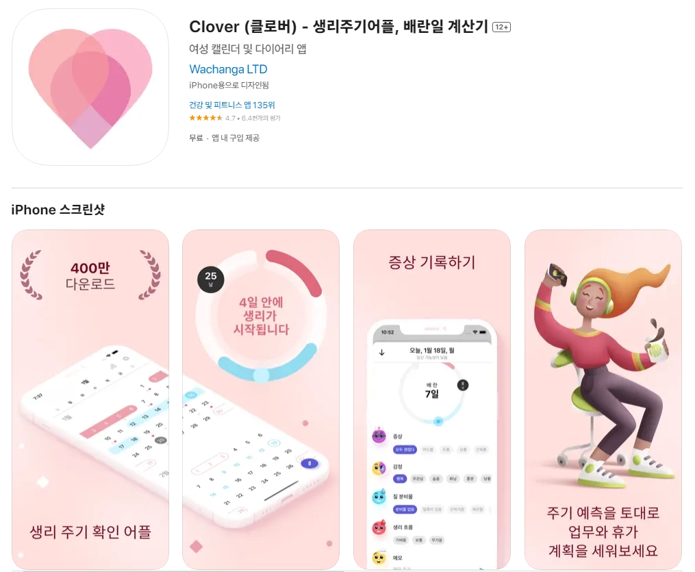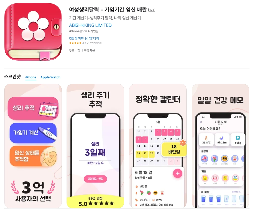 1) 아이폰 여성생리달력 - 가임기간 임신 배란 12+ 어플 소개