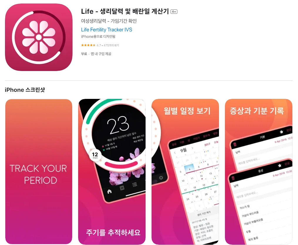 1) 아이폰 Life - 생리달력 및 배란일 계산기 4+ 어플 소개