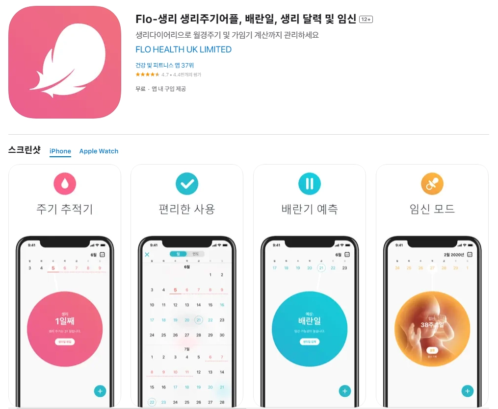아래는 아이폰 Flo-생리 생리주기어플, 배란일, 생리 달력 및 임신 12+ 어플에 대한 자세한 설명입니다. 참고하세요.