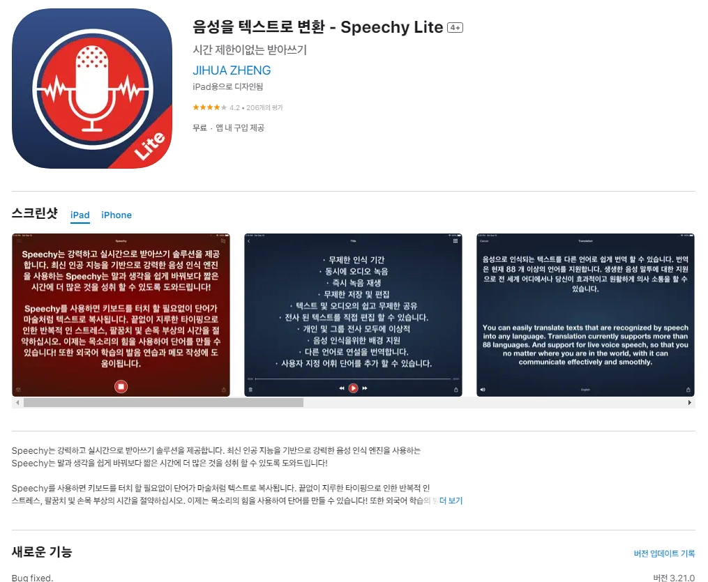 2) 아이폰 음성을 텍스트로 변환 - Speechy Lite 4+ 어플 다운로드 / 스크린샷