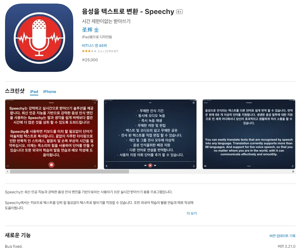 음성을 텍스트로 변환 - Speechy Lite 4+ 어플을 만들어 주신 개발자님 감사합니다~