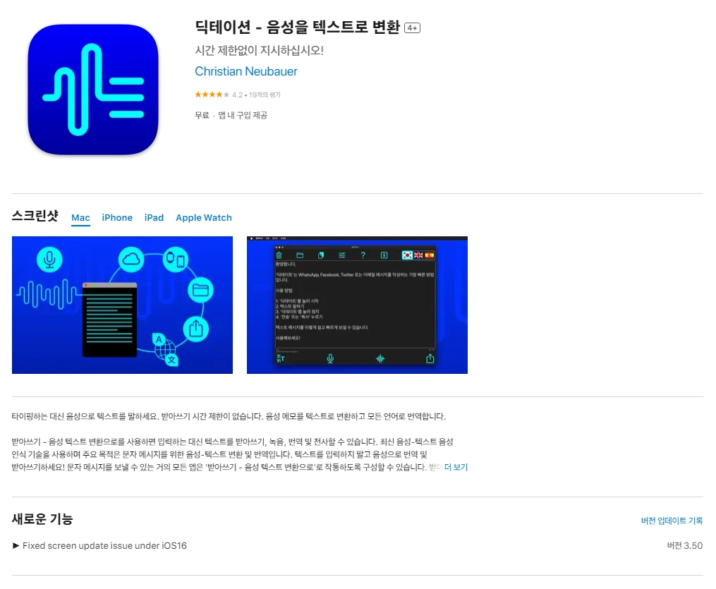 2) 아이폰 딕테이션 - 음성을 텍스트로 변환 4+ 어플 다운로드 / 스크린샷