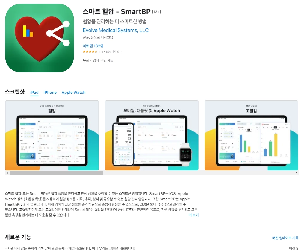 아래는 아이폰 스마트 혈압 - SmartBP 12+ 어플에 대한 자세한 설명입니다. 참고하세요.
