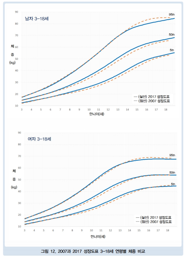 [3~18세 체중비교 그래프]