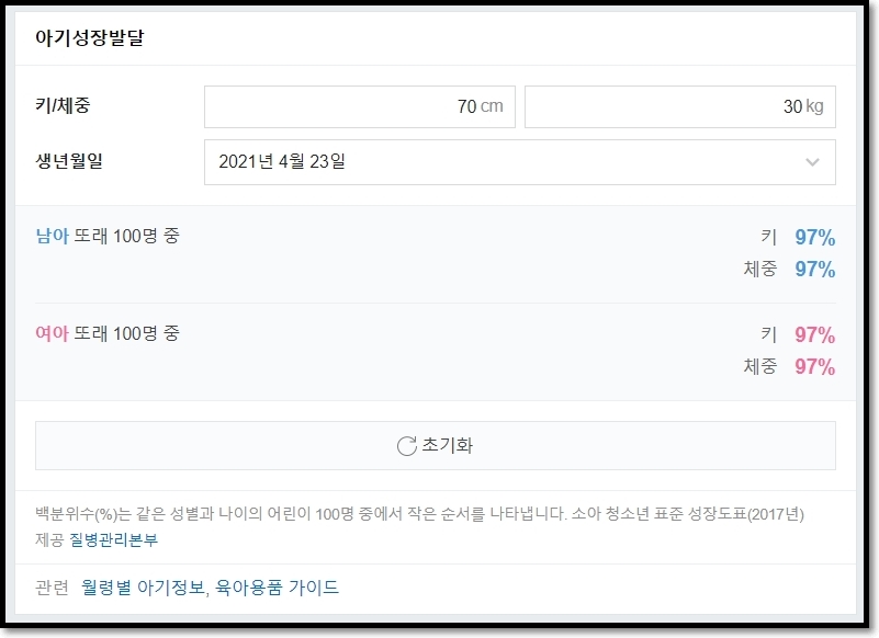 네이버에서 신생아(아기) 성장발달 계산기를 제공하고 있습니다.