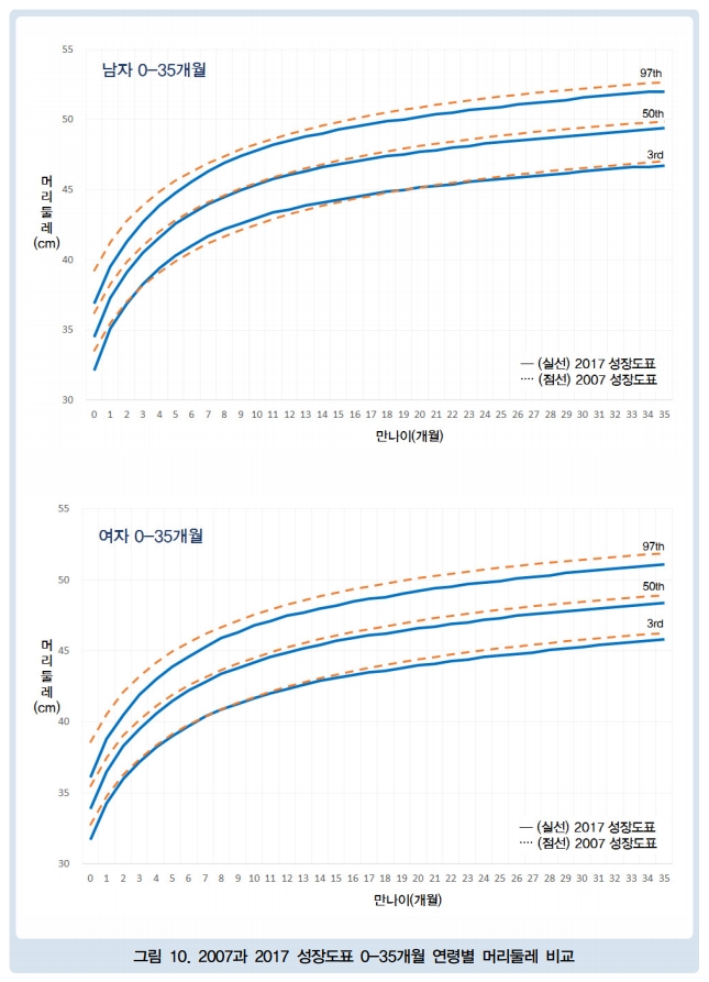 [0~35개월 연령별 머리둘레 비교 그래프]