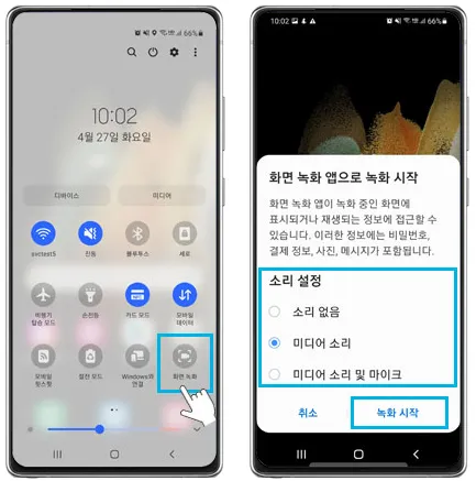 ※ 참고 : 일부 앱은 저작권 제한으로 인해 화면 녹화 기능을 차단할 수 있습니다.