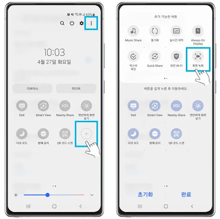 빠른 설정창에서 화면 녹화를 찾을 수 없는 경우, 아래의 방법으로 빠른 설정창에 기능을 추가할 수 있습니다.
