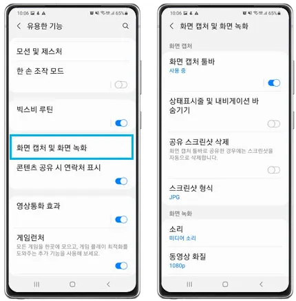 1. 갤럭시 스마트폰 화면녹화 화면캡쳐 기본조건