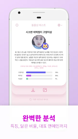 나와 닮은 동물상과 연예인을 지금 바로 찾아보세요.
