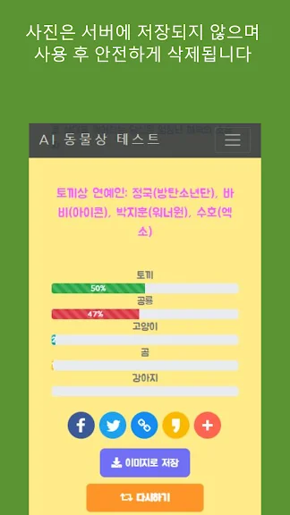 이렇게 해서 닮은꼴 연예인 동물상 찾기 어플 추천 순위 2위 어플 소개를 마치도록 하겠습니다. 어플입니다. 도움이 되셨기를 바랍니다.
