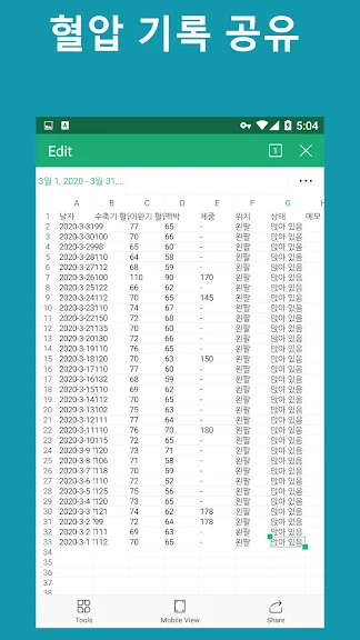 혈압을 편리하게 기록, 보관, 분석할 수 있습니다.