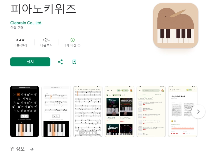 아래는 피아노키위즈 어플에 대한 스크린샷 정보입니다.