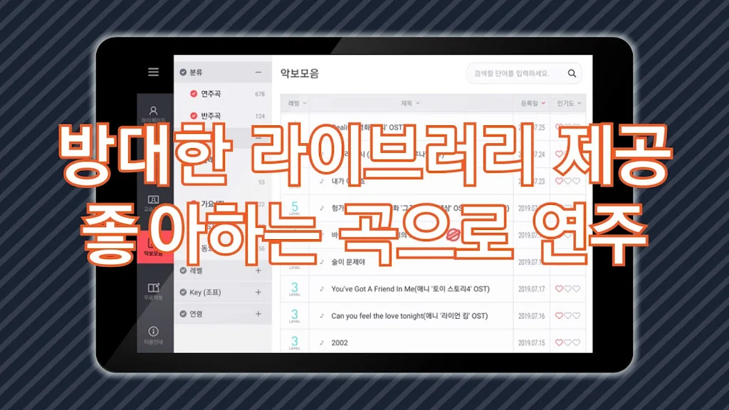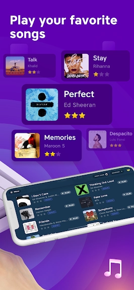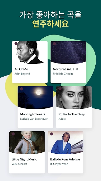 - 팝 히트곡부터 인기 클래식 곡까지 가장 좋아하는 노래를 연주하세요.
