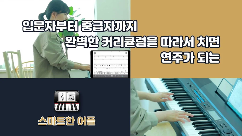 저희는 완전 초보를 낱장 악보를 읽으면서 피아노 건반을 연주할 수 있는 실제적인 피아니스트로 변신시키는 데 도움이 되도록 바로 처음부터 이 앱을 설계하고 만들었습니다.