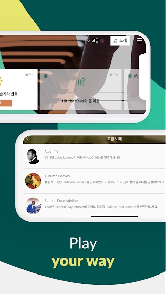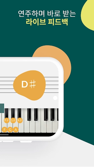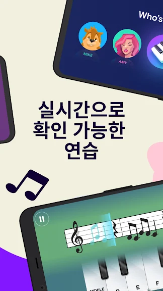 - 본인의 연주에 대해 즉각 피드백을 받으며 빠르게 피아노를 배우고 스킬을 향상시키세요