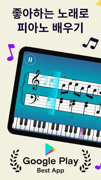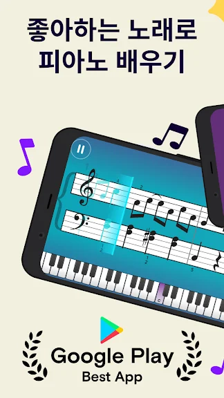 피아노에 대해 아무 것도 몰라도 됩니다. 피아노 건반만 있으면 됩니다. 그게 다입니다: 앱 사용자는 피아니스트가 되기 위한 놀라운 여정을 시작할 준비가 된 것입니다!