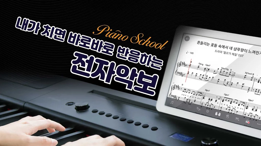 이제 앱 하나로 통합된 피아노스쿨에서 좋아하는 노래로 피아노를 학습해보세요..
