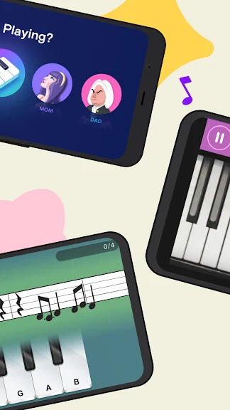 이 앱은 피아노 연주에 지식이 없는 모든 사람을 위한 것이며, 아이부터 성인까지 모든 연령에 적합합니다.
