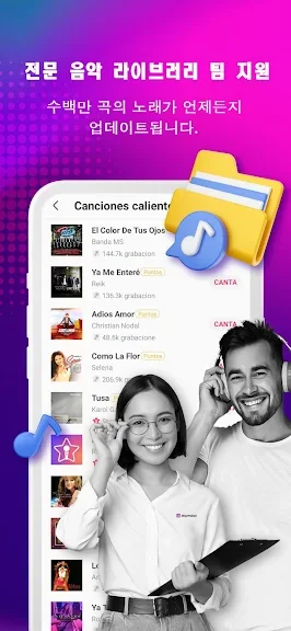 + “콜라보”를 통해 가수 또는 친구와 듀엣을 할 수 있습니다. 같이 녹음하세요!