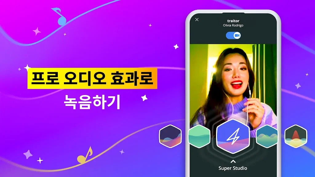 + 다양한 음성 효과로 가라오케 노래를 녹음 및 편집하세요