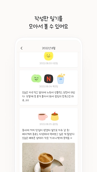 아래는 꼬박일기 - 일기, 일기장, 기분일기장, 다이어리 어플에 대한 스크린샷 정보입니다.