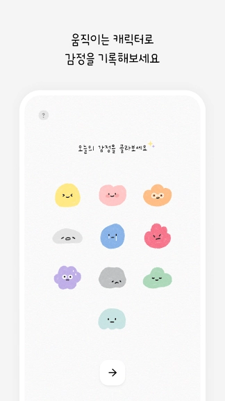 움직이는 감정 캐릭터로 기분을 기록하고, 달력에서 한눈에 확인할 수 있어요.